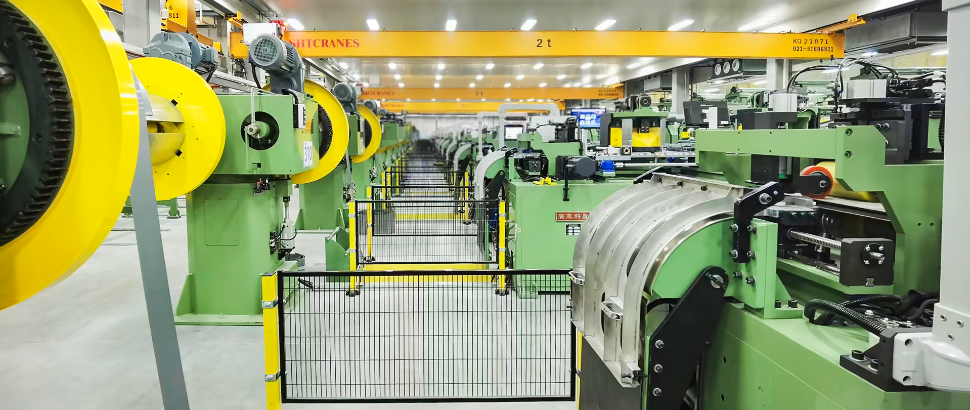1. O equipamento possui um sistema de posicionamento central, equipado com dois cabeçotes desenroladores, duas máquinas de corte e cinco puncionadeiras, possibilitando operações de corte simultâneas.