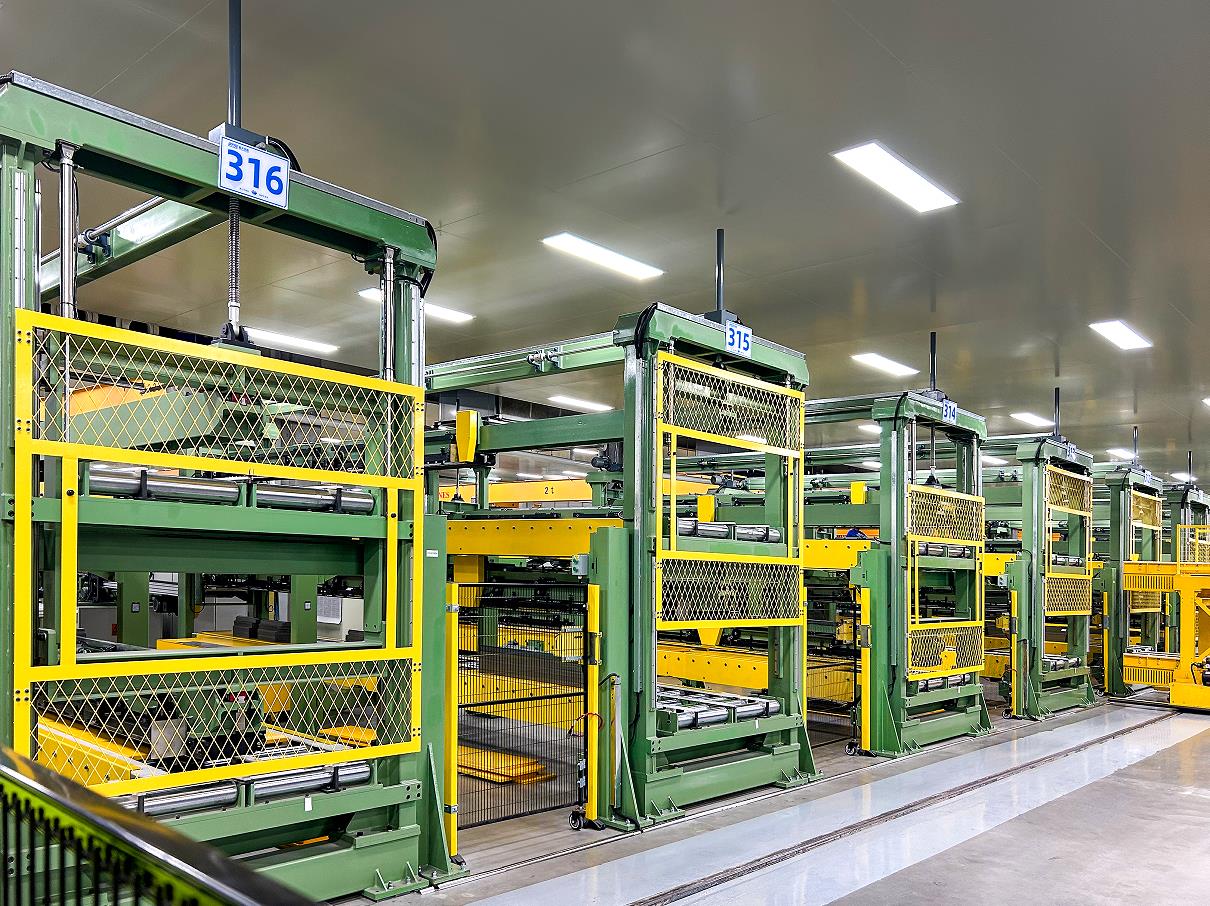 4. Dispositivo de estocagem: utiliza um método de estocagem sequencial com uma estrutura de duas camadas — a camada superior empilha duas colunas e a camada inferior empilha três colunas — para concluir de forma independente todo o processo de laminação do núcleo do transformador.
