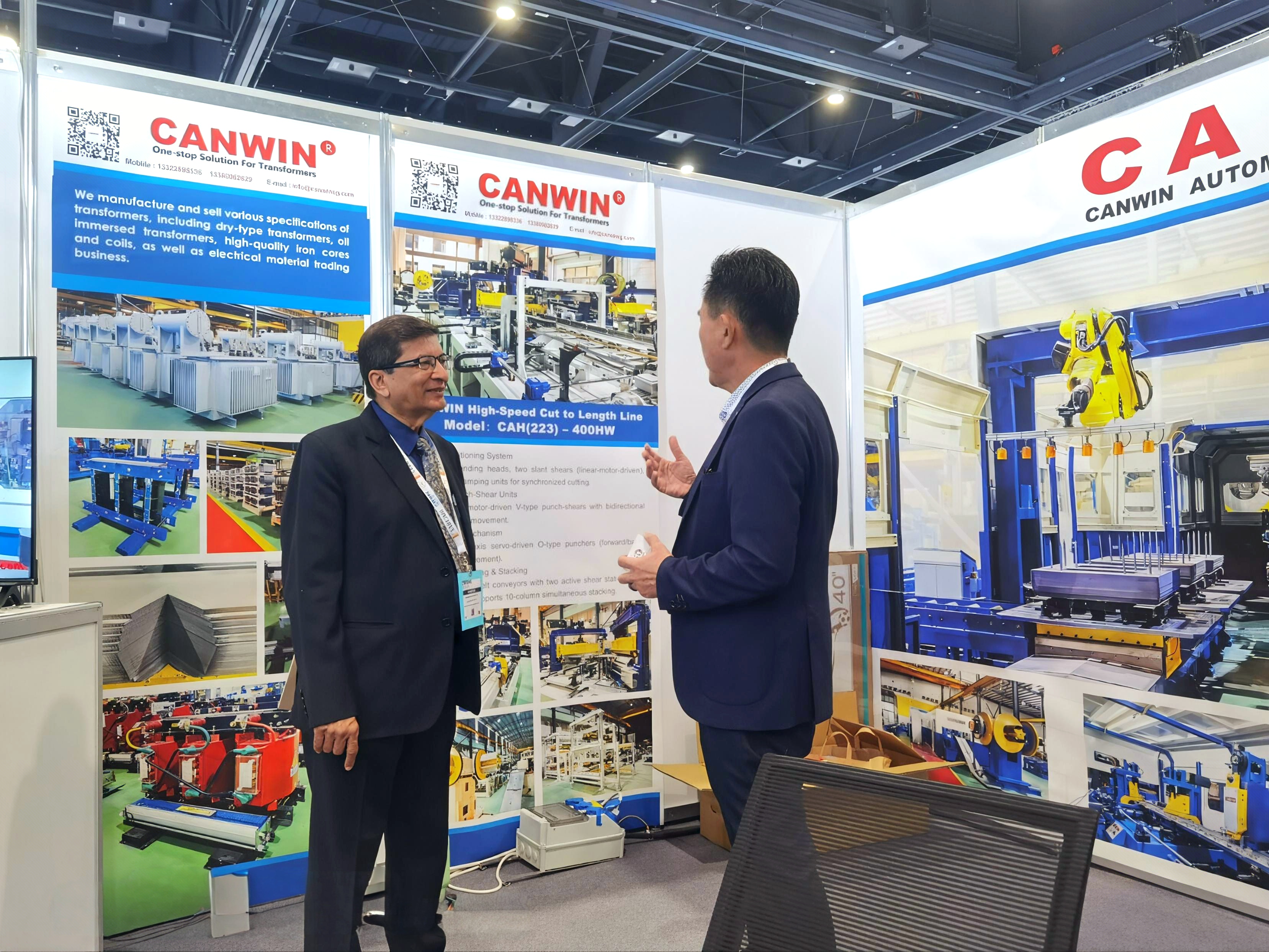 No salão de exposições, o produto estrela da CANWIN, o "Centro de Processamento de Núcleo de Transformador", atraiu atenção significativa de clientes internacionais com seu desempenho excepcional e design exclusivo.