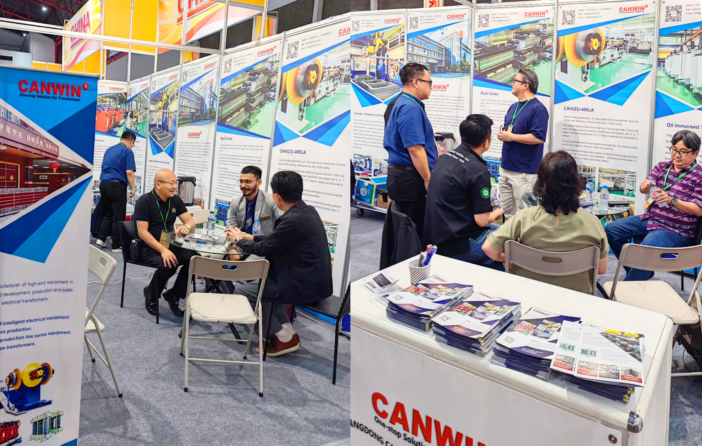Na exposição, a CANWIN também revelou seu recém-desenvolvido centro de processamento de núcleo de transformador, atraindo muitos visitantes para visitar e consultar.