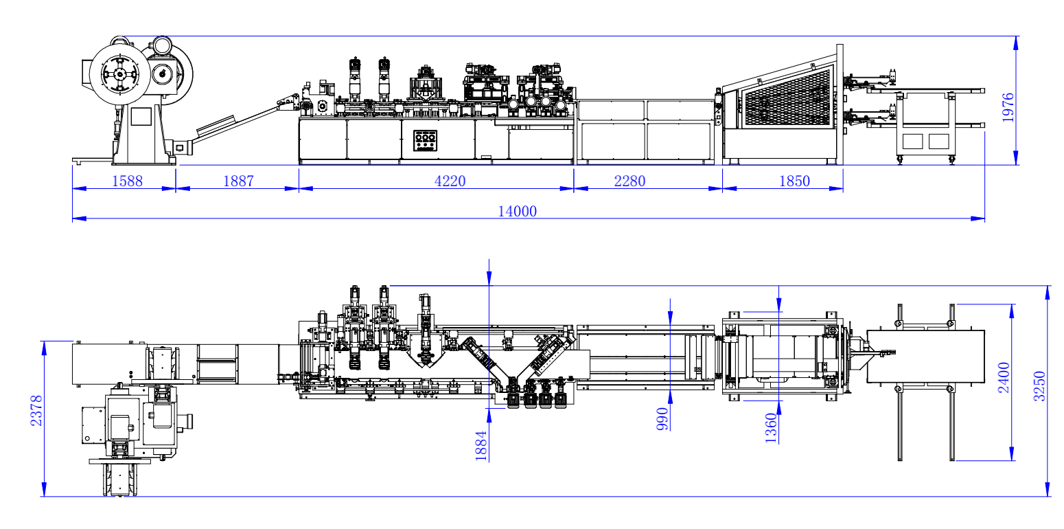 O alimentador dianteiro e traseiro é composto de rolo de alimentação superior e inferior e rolo de medição, a unidade de alimentação adota o sistema de controle de movimento alemão Siemens Simotion. Este equipamento adota o design de mecanismo de material de empurrar e puxar servo de posicionamento central mais avançado; O rolo de alimentação é feito de material de poliuretano, comprimento de medição do codificador e controle servo de circuito fechado, a velocidade de alimentação normal é de 0-180 m/min, a velocidade de alimentação mais alta é de 240 m/min. O alimentador frontal tem a função de empurrar o material, e o alimentador traseiro tem a função de puxar o material. Os dois alimentadores podem trabalhar de forma síncrona para manter o material no canal em movimento.