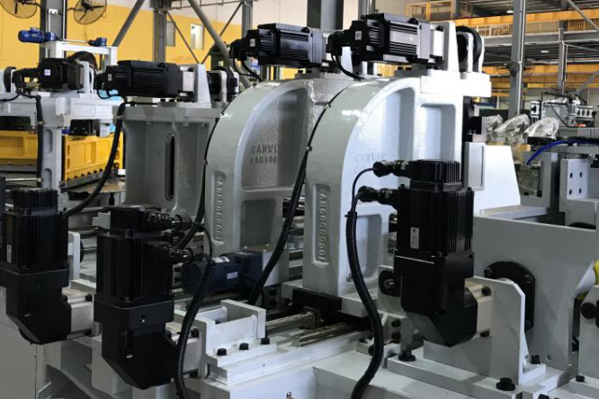 A seção de tesouras inclui: tesouras de +45° e tesouras de 135°, mesa de deslizamento transversal e rolo de descarga. A estrutura dos dois grupos de máquinas de cisalhamento são feitas de fundição. O cisalhamento é acionado pelo servo motor Siemens com alta eficiência e baixo ruído.