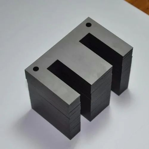 Para o núcleo de ferro do transformador, geralmente é usada uma chapa de aço silício laminada a frio com espessura de 0,35 mm. De acordo com o tamanho do núcleo de ferro necessário, ele é cortado em um pedaço longo e depois sobreposto em uma forma de "dia" ou em forma de "boca". Teoricamente falando, para reduzir a corrente parasita, quanto mais fina a espessura da chapa de aço silício e quanto mais estreita a chapa emendada, melhor o efeito. Isso não apenas reduz a perda de correntes parasitas e o aumento de temperatura, mas também economiza os materiais usados nas chapas de aço silício.